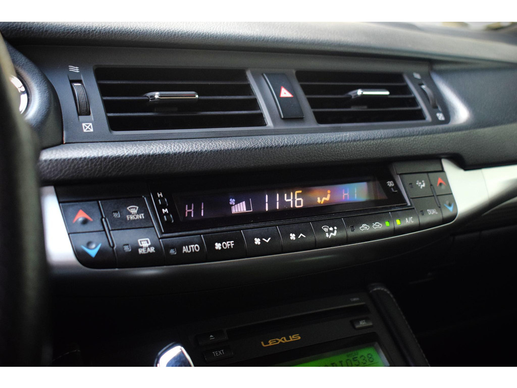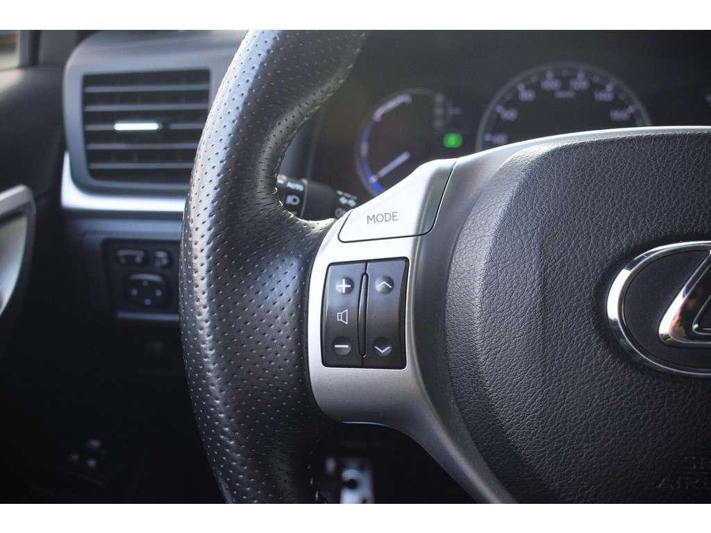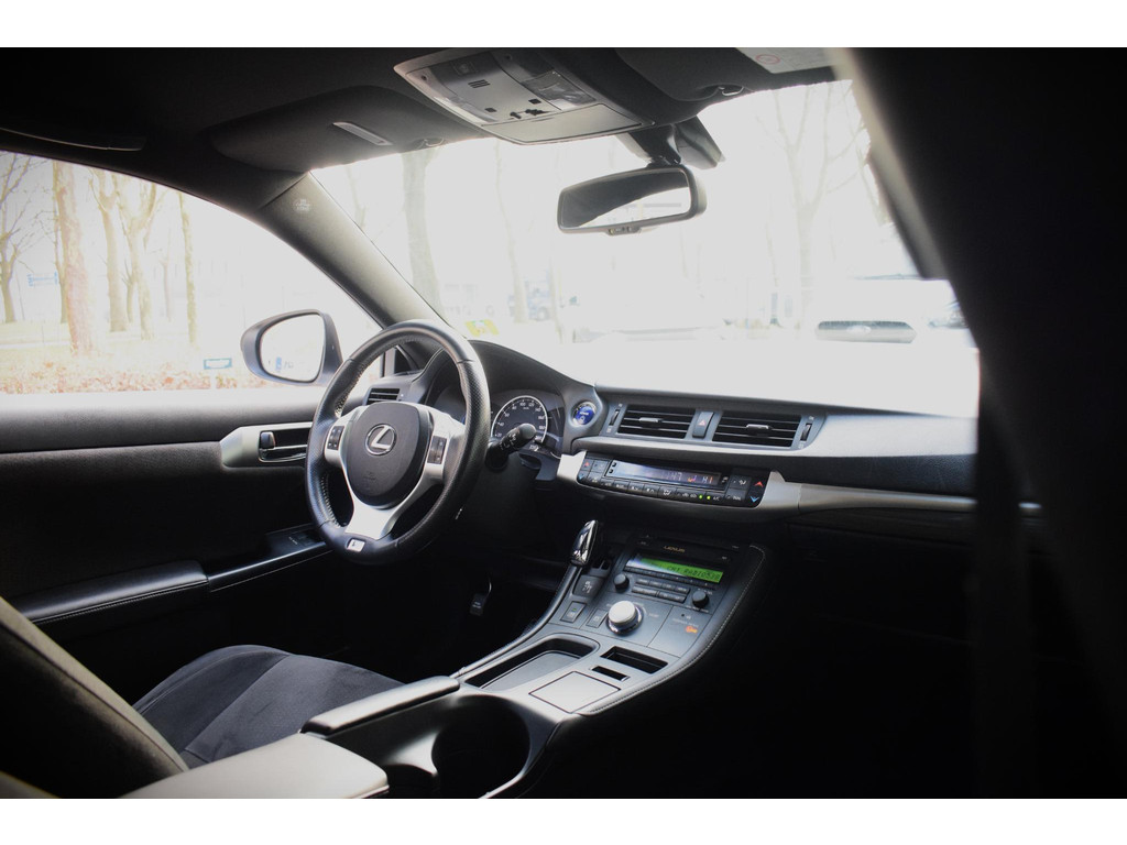 Kinderfietsje niet gezien bij het inparkeren? Dat gebeurt u nooit meer. Daar zorgt de achteruitrijcamera wel voor! Nooit meer te warm of te koud. De electronic climate control zorgt altijd voor de temperatuur die u kiest. Een paar spetters of een donderbui? De regensensor weet het als eerste en reageert precies goed! Cruise control verlaagt de brandstofkosten en verhoogt het rijcomfort. Zoals u weet, liggen de autosleutels altijd onderin de boodschappentas die u sjouwt. Geen probleem bij deze Lexus CT. De token in uw jaszak wordt van dichtbij gesignaleerd door de keyless entry en alle sloten gaan automatisch open. Wat u ook in deze auto kunt vinden zijn automatisch dimmende binnenspiegel, lederen stuur en boordcomputer.