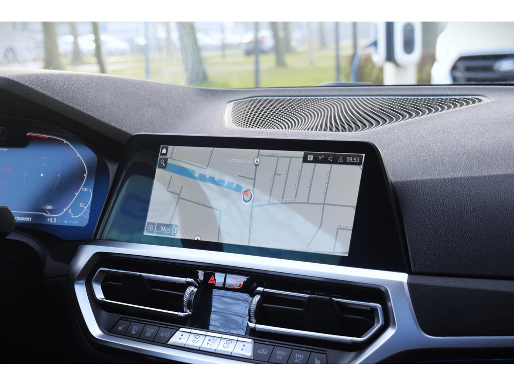 Zoals u mag verwachten van deze BMW 3-serie is hij uitgerust met een reeks aan actieve veiligheidssystemen. De camera van de verkeersborddetectie herkent verschillende soorten verkeersborden en toont deze op het dashboard. Het Lane-keeping systeem zorgt voor een automatisch constante positie binnen de rijstrook. Afdwalen is uitgesloten. Actieve dodehoekdetectie waarschuwt als een ander voertuig zich in uw dode hoek bevindt. Dit verkleint de kans op een aanrijding. De auto is ook uitgerust met head-up display, forward collision warning system, hill hold functie, brake assist, vermoeidheidsherkenning en bandenspanningcontrolesysteem.